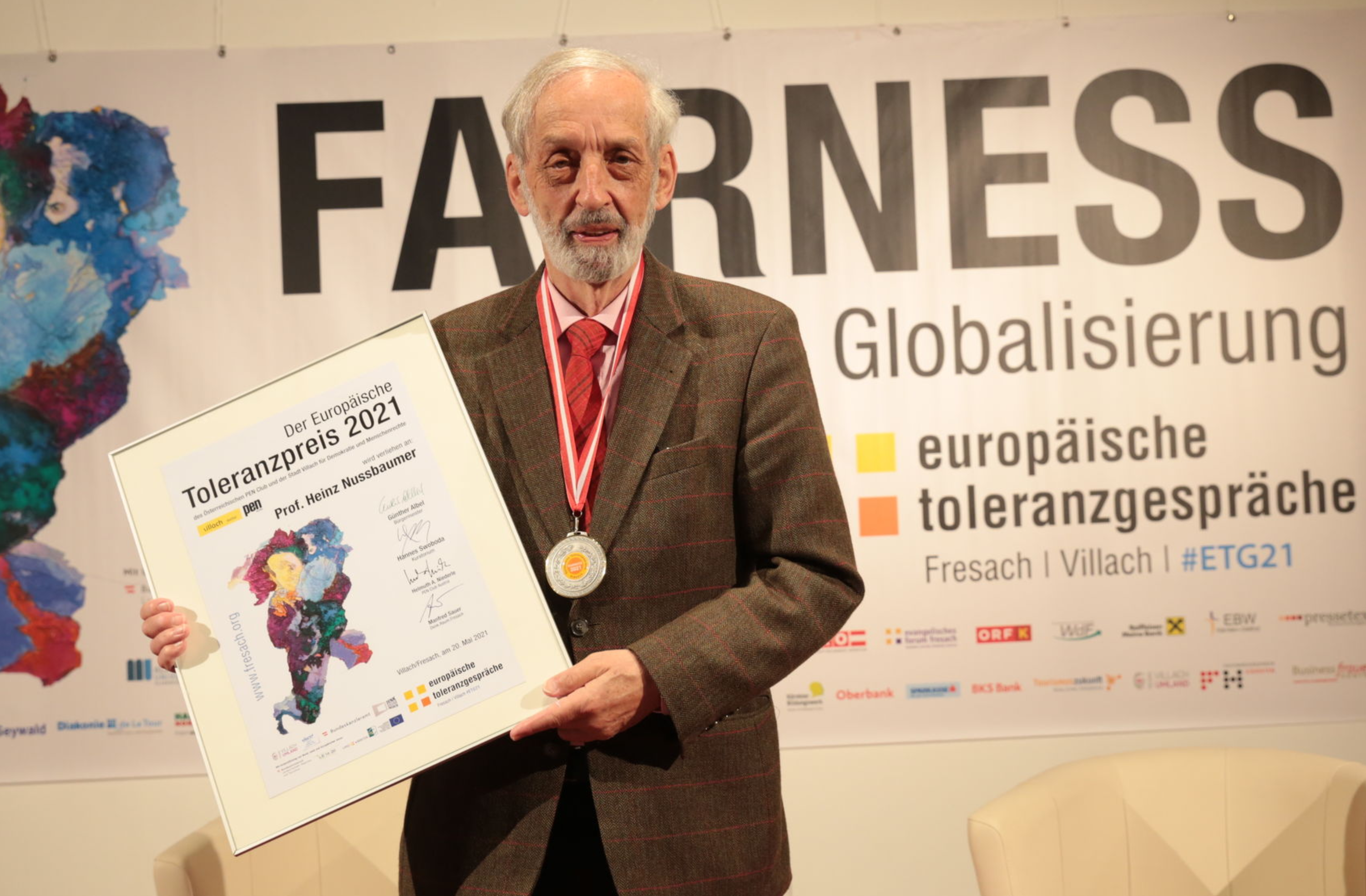 Der Journalist, Buchautor und Herausgeber der Wochenzeitung „Die Furche“, Heinz Nußbaumer (77), wurde am Donnerstagabend in Fresach mit dem Europäischen Toleranzpreis 2021 für Demokratie und Menschenrechte des Österreichischen PEN-Club und der Stadt Villach ausgezeichnet. Nußbaumer sei Brückenbauer und „Pilger im Meer aufgeregter Stimmen“, so die Begründung der Jury.